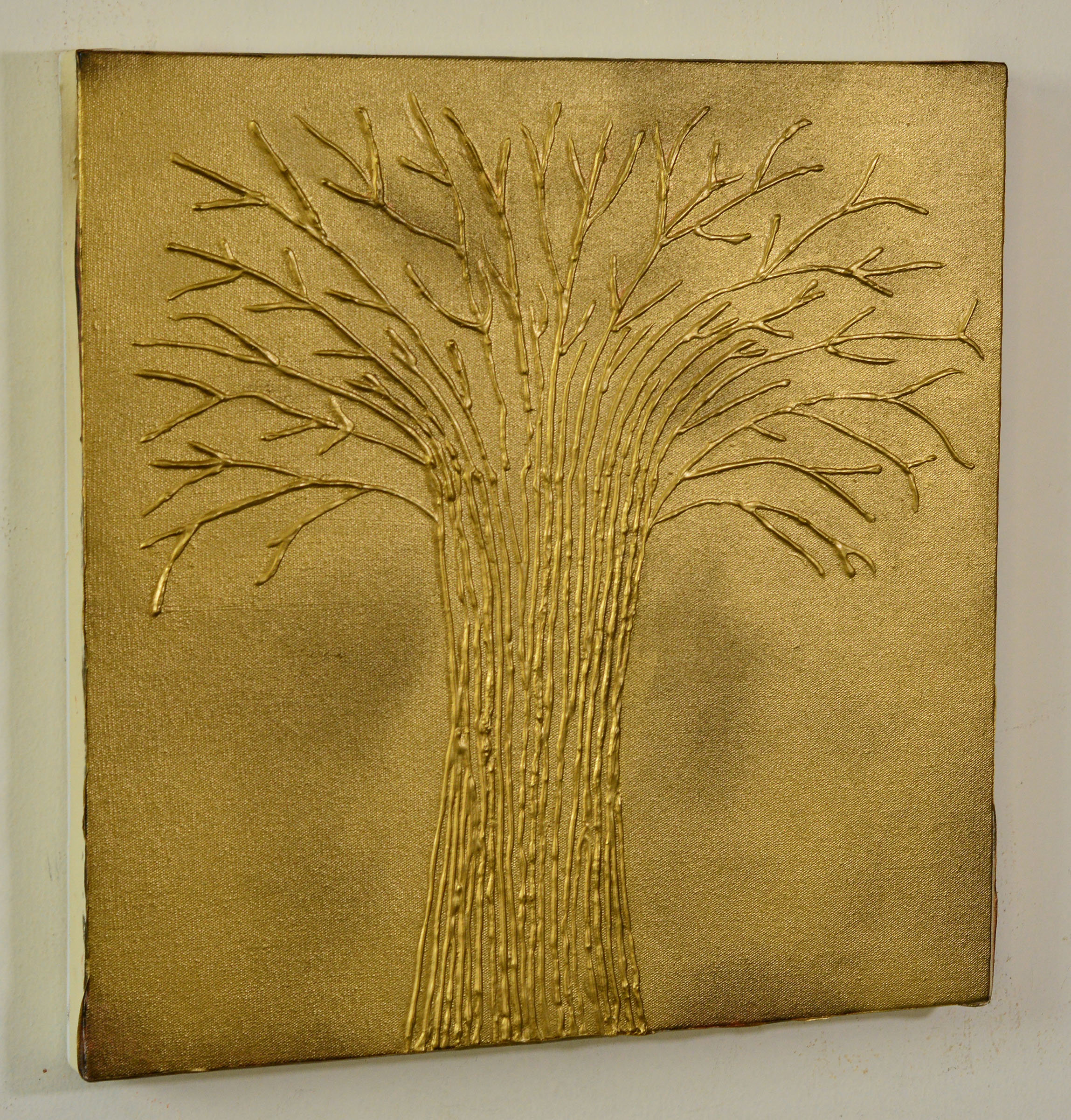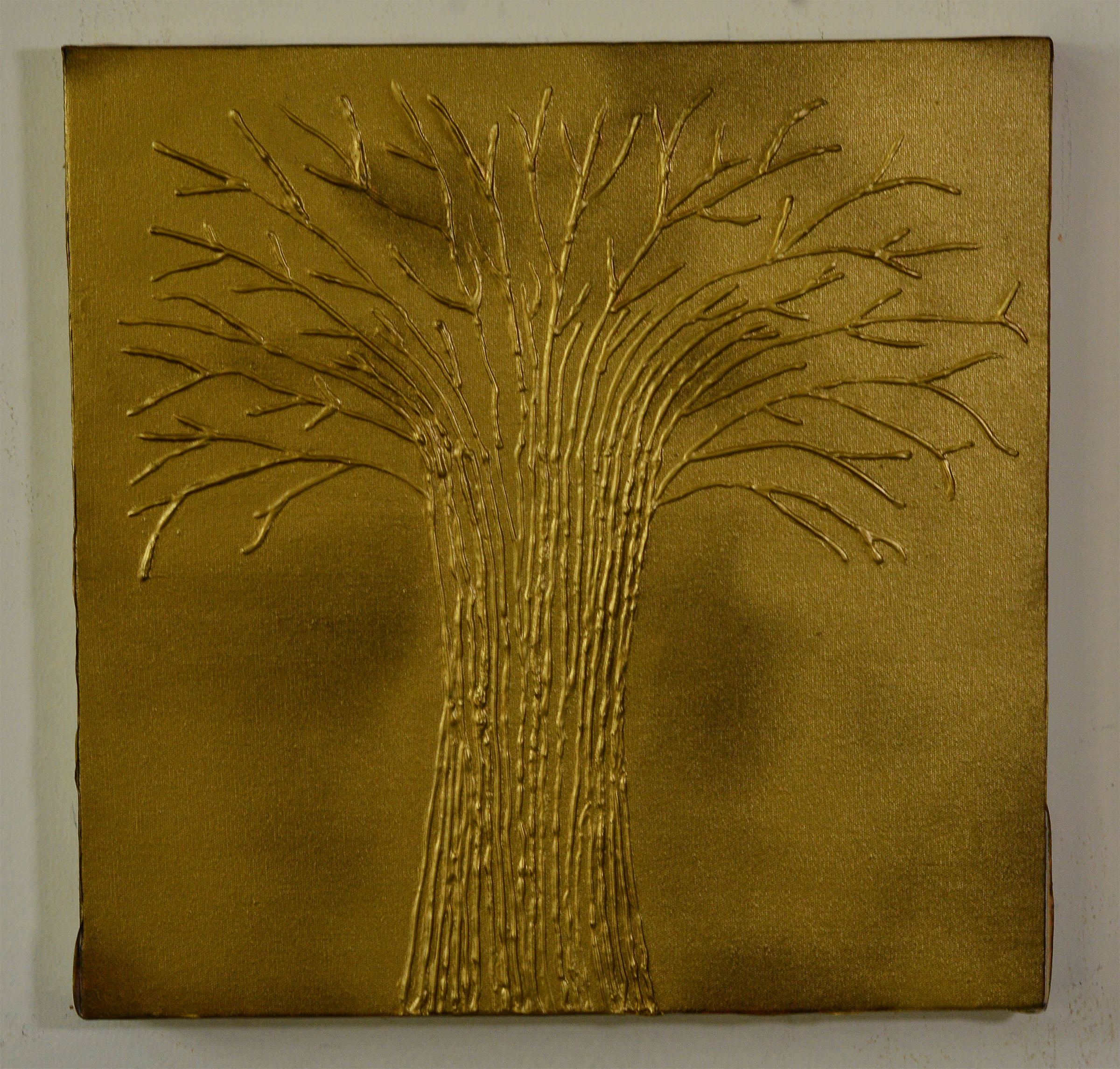 Abstract Tree with Gold Emboss : on canvas 15×15 inches