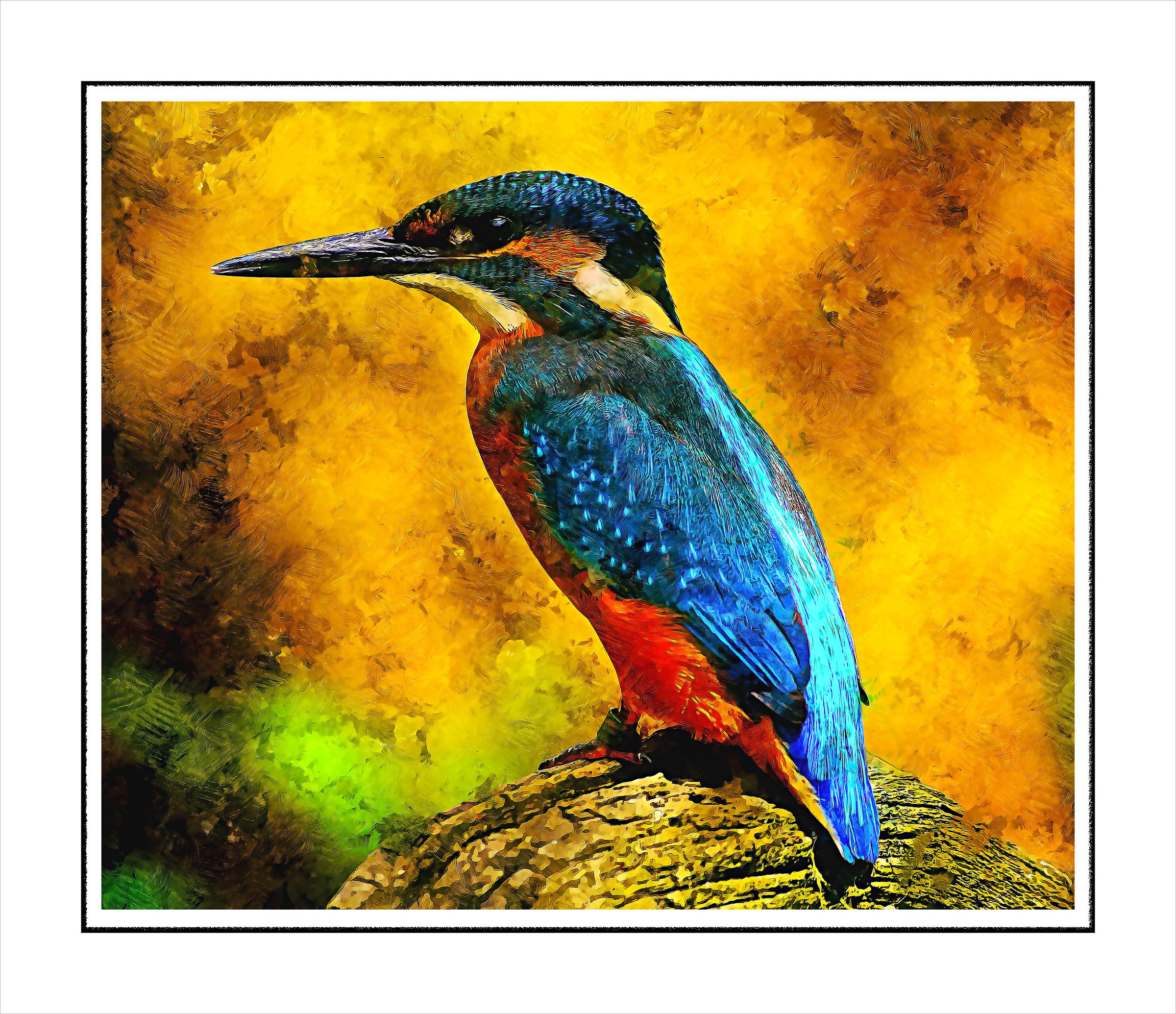 | Description: | This is an exquisite art of bird digitally Printed and Framed – created by our artist, and completed to perfection. Printed on high end Canvas media and Framed in Fibre and Pinewood |