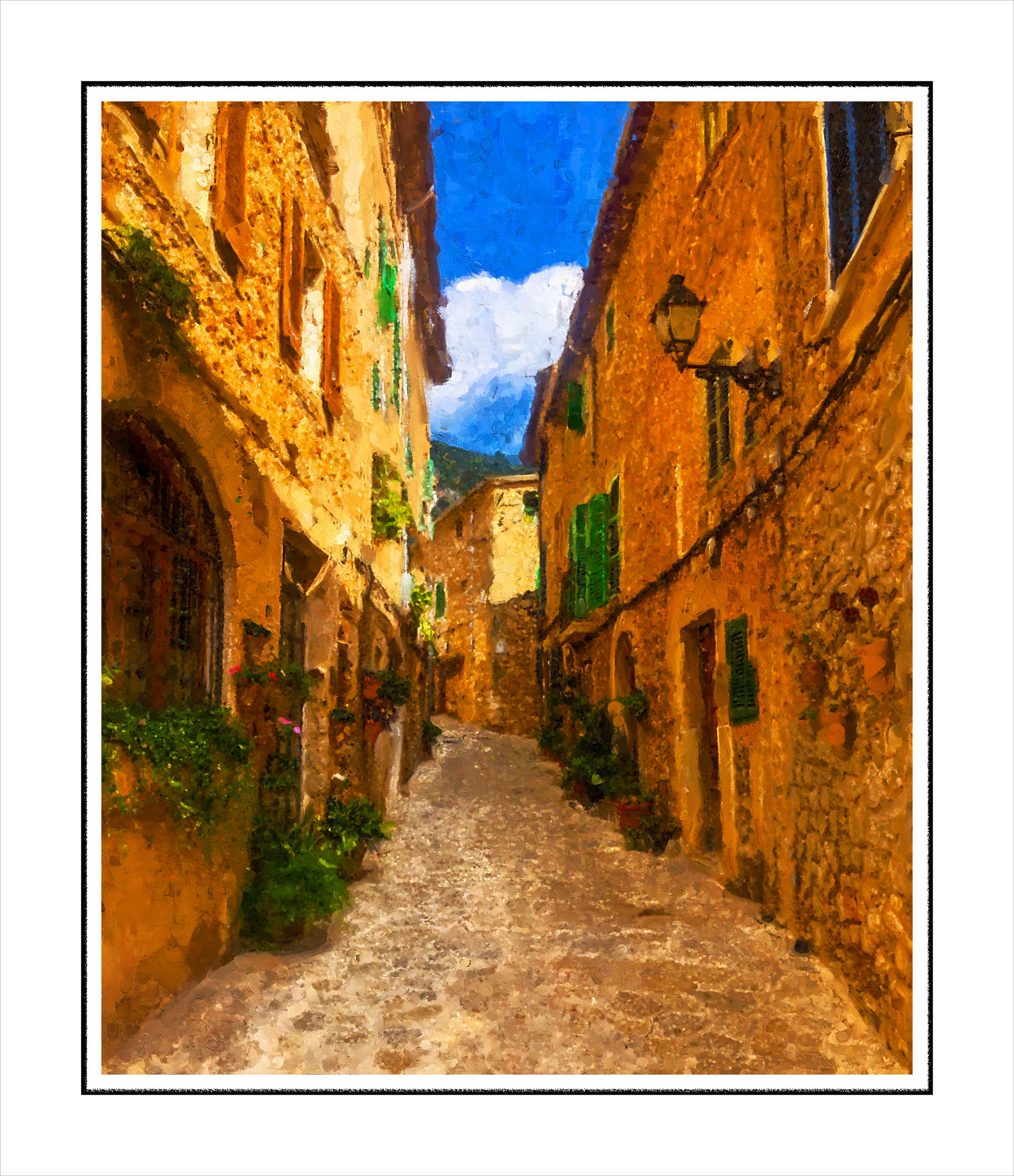 | Description: | This is an exquisite City Lane digitaly Printed and Framed – created by our artist, and completed to perfection. Printed on high end Canvas media and Framed in Fibre and Pinewood |